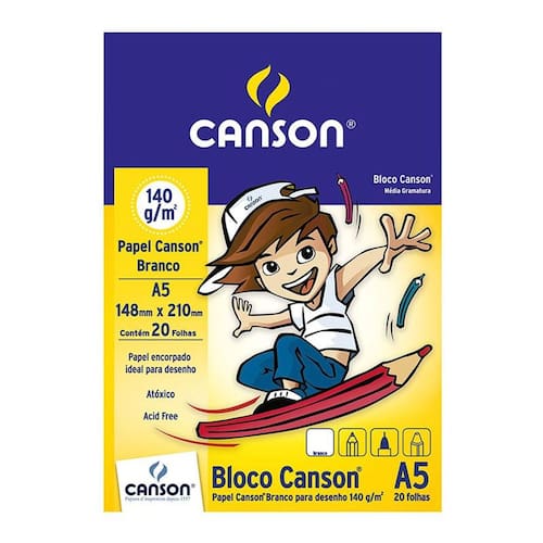 Bloco desenho branco A5 140g - com 20 folhas - Canson