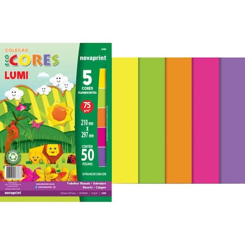 Papel colorido para dobradura, recorte, colagem e outros trabalhos manuais.