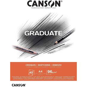 Os blocos Canson Graduate Croquis possuem um papel branco natural com gramatura 90 g/m² e levemente poroso. Composto por 40 folhas com grão fino e fácil de apagar, é o suporte ideal quando é preciso realizar esboços a lápis. Ideal para uso de: Lápis grafite, lápis de cor, pastel, carvão e sanguínea.