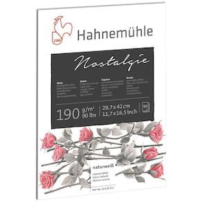 Bloco Hahnemühle Nostalgie 190G A3 50 Folhas Bloco de desenho com um papel pesado, branco natural e colado no topo, sólido e firme ao mesmo tempo. A granulação fina do papel permite que os lápis deslizem facilmente sobre sua superfície. A excelente aderência de cores e a possibilidade de obter traços claramente definidos são características ideais para todos os tipos de trabalho, desde esboços de arquitetura até desenhos rápidos e cheio de cores. Adequado para todas as técnicas secas, mas possibilitando também a adição de tintas úmidas, este papel permite grande versatilidade e precisão ao processo artístico - Contém 50 folhas - Bloco hahnemühle A3 - Tamanho A3: 29,7x42cm - Gramatura de 190g - Folhas brancas