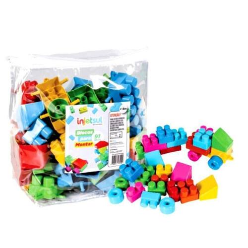 Bloco Montar e Encaixar 91 Peças Grandes Para Bebê 18 Meses Acima Bloco momtar na sacola plastica com Ziper e essa para guardar contem 91 peças grandes que não podem ser engolidas, ajuda no desenvolvimento e habilidades da criança. Ajuda mantar organizado Com Varias peças diferente possibilida formar carrinhos e diversos modelos de montar e empilhar. Tamanho Peças: 04 a 16cm em media Tamanho da Bolsa: 25 x 26 x 20cm Idade: 18 meses acima Selo Inmetro: CE-BRI/OCP00190 Garantia 90 dias contra defeitos Fabricação Nacional Material de qualidade.