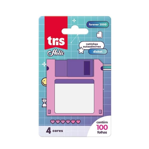 O Bloco Nota Auto Tris Holic Disket 70X70 100 Folhas 900937 é perfeito para quem deseja adicionar um toque nostálgico e moderno ao seu dia a dia. Com a coleção Forever 2000, esse bloco traz elementos nostálgicos dos anos 2000, como cores fortes, molduras de sistemas operacionais antigos e efeito glitch.