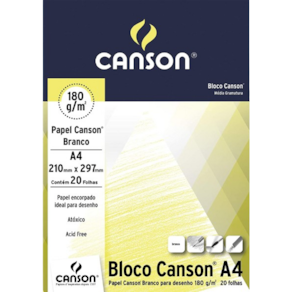 O Bloco Canson Desenho Branco é o produto mais icônico da Marca Canson sendo frequentemente utilizado nas escolas e cursos livres de Artes. Com uma textura levemente granulada, este papel é especialmente indicado para desenhos à lápis de cor, giz de cera e grafite, garantindo uma ótima aderência e vivacidade das cores. Ao desenhar, sua superfície exige maior domínio do traçado, o que auxilia no desenvolvimento da coordenação motora. Sendo de pH neutro, oferece maior durabilidade.