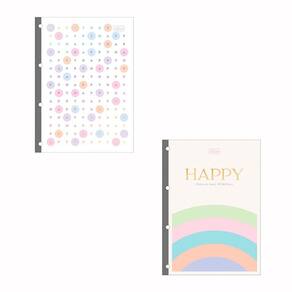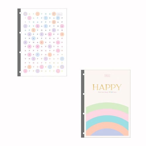 O Refil Tiliflex para Caderno Argolado Universitário Happy 80 Folhas possui folha com adesivos funcionais e folhas pautadas decoradas coladas. Ideal para o dia a dia na escola ou na faculdade.