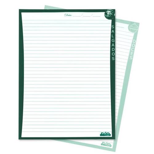 Blocos para fichário de receitas culinárias Contem jogo 50 folhas A4 25 folhas para receitas doces 25 folhas para receitas salgados mediddas 210 x 297 mm Marca: Deo Plasticos