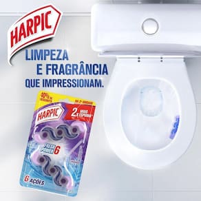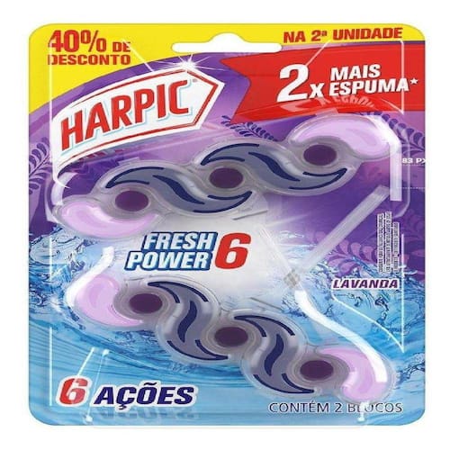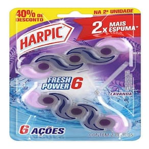 Marca: Harpic Contém: Bloco Sanitário Harpic Fresh Power 6 Lavanda com 2 unidades Rendimento: Até 500 descargas