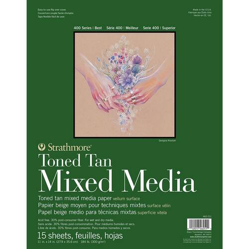 Papel tonificado bronzeado pesado perfeito para mídia clara e escuraCaracterísticas combinadas de aquarela e papel de folha de desenho para mídia úmida e seca83 kg/300 g/m e feito nos EUACola de 28 x 35,5 cm (11 x 14)15 folhas por bloco e 100% reciclado com 30% PCW Marca: Strathmore