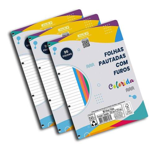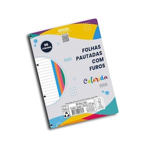 A São Domingos usa todo o papel 100% renovavél, garantindo sustentabilidade. Maior qualidade do mercado e ótimo custo beneficio. Bloco de 96 Folhas com Furos para Fichário. Folhas com Bordas coloridas 96 folhas divididas e 4 cores, sendo 24 folhas azuis, 24 folhas verdes, 24 folhas laranja e 24 folhas rosa. Ideal para distribuir cada cor para uma matéria.