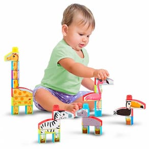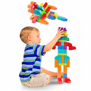 Blocos de montar diversos blocos com cores e tamanhos diversificados. Com um lado com figura e um lado liso, possui fácil encaixe e desencaixe. Sua variedade permite diversas criações estimulando a inteligência da criança. Este brinquedo é fabricado com plástico de alta qualidade, com cores atrativas e divertidas estimulando a inteligência e a criatividade e a melhora das habilidades motoras, foco e concentração. 40 peças.