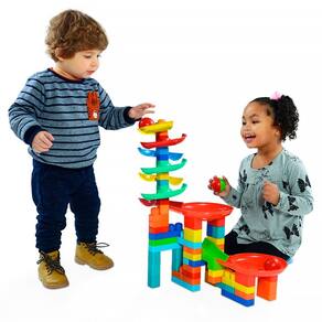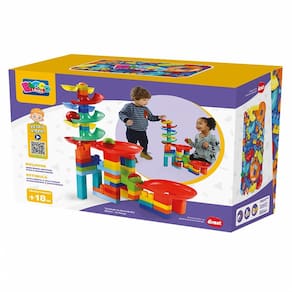 As crianças vão se divertir em dose dupla com o Tobobola da Blocolândia. São 61 peças para brincar de montão. Além de brincar montando o Super Circuito peça a peça, as crianças também são estimuladas a movimentarem a bolinha pela rampa.