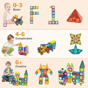 Brinquedo de montar CherryCherby para crianças 3407 140 psc para crianças - ?139 peças magnéticas?O conjunto de construção magnética de alta qualidade da Cherby adiciona adesivos DIY de aprendizagem precoce para crianças. É equipado com 2 carros, 3 escadas e 2 bonecos para que as crianças possam criar mais possibilidades e sentir o charme da geometria, cor e luz durante o jogo, sendo inspiradas. - ?Brinquedos magnéticos STEAM?Este conjunto de blocos magnéticos é o brinquedo STEAM perfeito. As crianças estimulam a criatividade, reconhecem formas e cores geométricas, desenvolvem o pensamento espacial, têm uma compreensão preliminar da estrutura arquitetônica, pensam e resolvem vários problemas encontrados e, sem saber, melhoram várias habilidades enquanto brincam. - ?Telhas magnéticas seguras e duráveis?Nossos azulejos magnéticos são feitos de material ABS de alta qualidade e artesanato atualizado, seguros e duráveis e estão em conformidade com várias certificações, como CPC. Projetado com cantos arredondados para evitar que o bebê arranhe. A força magnética moderada facilita a construção e a desmontagem. Testado contra quedas centenas de vezes. É um ótimo brinquedo magnético para todas as idades. - ?Presente de blocos magnéticos?Este brinquedo com formas magnéticas é ótimo em casa ou na escola. Oferece uma maneira divertida e envolvente de passar tempo de qualidade com a família ou amigos, desenvolve sentimentos e fortalece os laços no processo de atingir objetivos juntos. É um ótimo presente de brinquedo magnético. - ?Por que escolher a Cherby?Nossos esforços para proteger seu filho. Fornecemos produtos de alta qualidade, também fornecemos um serviço pós-venda atencioso. Fornecemos serviço de devolução e troca de 1 ano. Qualquer dúvida sobre qualidade ou uso, não hesite em entrar em contato conosco.