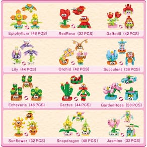 --- Adequado para bricolage --- Crie beleza. O conjunto de buquê contém camélia roxa, lavanda, rosa rosa, hortênsia, etc., cada um com características e significados únicos. Os caules, pétalas e folhas das flores podem ser ajustados para mudar a forma e criar um belo arranjo. Combinação maravilhosa. Adequado para dar de presente para sua mãe, seu amor em todos os feriados importantes. Sua forma requintada, combinação de cores maravilhosa e aplicações de cena ricas são adequadas para coleta e visualização de longo prazo. A implicação de várias flores torna os presentes mais significativos. --- O conjunto de buquê contém lírio, echeveria, girassol, redrose etc., cada um com características e significados únicos. Os caules, pétalas e folhas das flores podem ser ajustados para mudar a forma e criar um belo arranjo. - ?36 pacotes de presentes de Dia dos Namorados?: Conjunto de presentes de Dia dos Namorados para crianças, inclui 36 pacotes de blocos de construção de flores que é compatível com 36 pequenas caixas coloridas impressas com coluna de assinatura. Os blocos de construção de flores incluem; epífilo, lírio, echeveria, girassol, rosa vermelha, orquídea, cacto, narciso, suculenta, rosa, snapdragon, jasmim, todos eles podem mudar em 3 formas diferentes, ótimos presentes de troca de dia dos namorados para meninas e crianças - ?Uma surpresa florescente em cada pacote?: Descubra uma deliciosa variedade de flores - cada pacote em nosso conjunto de flores permite que as crianças construam uma criação floral única. Também é ótimo para professores usarem como recompensas ou prêmios em sala de aula. Os blocos de construção de flores não são apenas um ótimo presente de dia dos namorados para crianças, mas também um excelente presente de festa para crianças. Melhores presentes para crianças na sala de aula - ?Ideal para aprender e brincar?: com 36 flores engraçadas diferentes, estes mini blocos têm o tamanho perfeito para mãos pequenas. Eles ajudam as crianças a reconhecer cores e formas, enquanto a construção de habilidades auxilia no desenvolvimento motor e cognitivo. É adequado para crianças de até 6, 7, 8, 9, 10, 11 e 12 anos de idade; crianças menores de 6 anos podem precisar de ajuda de um adulto, o que também fortalece a interação entre pais e filhos - ?Materiais seguros certificados?: A segurança é a nossa prioridade. Feitos de plástico ABS não tóxico de alta qualidade, nossos blocos de construção são totalmente compatíveis com os padrões ASTM e CPSIA, proporcionando um ambiente de jogo seguro para crianças - ?Presente perfeito para várias ocasiões?: manual de instruções independente + instruções independentes. Cada conjunto de blocos é transformável, permitindo que as crianças reconstruam suas figuras de animais de 3 maneiras diferentes, incentivando a criatividade e a resolução de problemas. Ideal para lembrancinhas de festa de aniversário, prêmios de sala de aula e presentes de Natal como Dia dos Namorados, Páscoa, Ação de Graças e Natal. Adequado para crianças a partir de 6 anos, estes brinquedos STEM são ótimos presentes para meninos, meninas e estudantes
