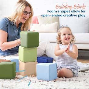 ECR4Kids Blocos de montar infantis SoftZone Patchwork, cubos de espuma, tom de terra, 12 peças - Blocos de construção: bebês e crianças pequenas se divertirão enquanto aprendem; incentivam o desenvolvimento de habilidades motoras, consciência espacial e coordenação óculo-manual em um berçário, sala de jogos ou sala de aula - Jogo de desenvolvimento: Estimule a criatividade e o pensamento abstrato através do jogo de blocos; aprenda conceitos matemáticos iniciais, como forma, tamanho e peso, e melhore as habilidades de linguagem enquanto eles descrevem suas criações - Design adequado para crianças: promove o desenvolvimento de habilidades cognitivas e estimula a curiosidade natural do pequeno aluno por meio de brincadeiras abertas; formas leves e fáceis de transportar caem com segurança quando derrubadas - Seguro certificado: este conjunto de blocos sem látex é certificado GREENGUARD [OURO] para baixos COV, compatível com CPSIA, atende aos requisitos CAL TB 117 e construído com espuma certificada CertiPUR-US - Dimensões do produto: cada bloco mede 14 cm C x 14 cm L x 14 cm A; é necessária supervisão direta e ativa para adultos