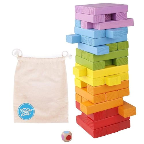 Aproveite o clássico jogo Tumbling and Stacking Blocks da Pidoko Kids. Fácil e divertido de jogar. Basta lançar os dados quando for sua vez, remover o bloco correspondente à cor dos dados e colocá-lo no topo, sem derrubar a torre! O jogador que derrubar os blocos primeiro é o perdedor! Projetado de forma inteligente, entretendo várias crianças para brincar ao mesmo tempo, este conjunto de blocos é uma adição adorável a qualquer casa, creche, sala de jogos, escolas, salas de espera e outras áreas de recreação para crianças.