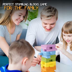 - Aproveite o clássico jogo Tumbling and Stacking Blocks. Basta lançar os dados quando for sua vez, remover o bloco correspondente à cor dos dados e colocá-lo no topo, sem derrubar a torre! O jogador que derrubar os blocos primeiro é o perdedor