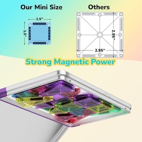 - ?Mini azulejos magnéticos com estojo de viagem? O conjunto de brinquedo magnético de 40 peças possui caixa de ferro portátil em movimento, serve como uma caixa de armazenamento e uma plataforma de construção criativa! Seja no avião ou no carro, as crianças podem criar designs em caixas magnéticas. O tamanho protable (19 x 13,5 cm) é perfeito para mochilas ou malas.
