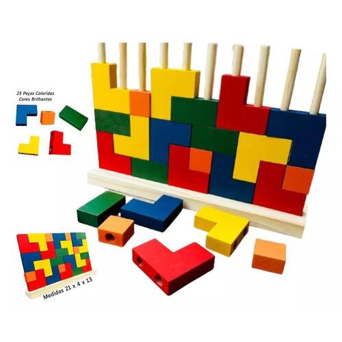 Novo blocos de encaixe em madeira tetris jr - 25 peças