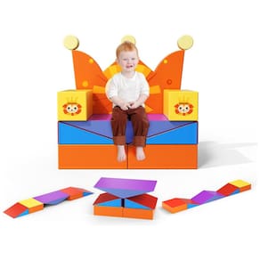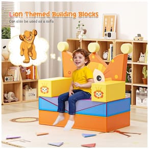 "Conjunto de Soft Play Nova Atualização" - O conjunto de atividades Lischwert para escalar e rastejar com tema de leão inclui 8 blocos de espuma para escalar, 1 encosto com design de coroa de leão, 2 corrimãos, 1 bloco para balanço e 4 almofadas de bloco. Eles podem ser empilhados e reorganizados em diferentes formas, estimulando a imaginação da criança enquanto se divertem.