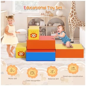 "Desenvolvimento Motor e de Escalada" - Os blocos de escalada em espuma são fáceis de montar. Ao escalar e descer os blocos, os bebês aprimoram suas habilidades motoras grosseiras, como equilíbrio, coordenação, força e o desenvolvimento físico geral.
