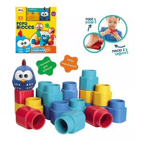 Fofo Blocos é um kit com blocos de montar macios, fofinho para crianças pequenas. A brincadeira é encaixar, empilhar e montar. Pode pisar, sentar em cima que não machuca. Material atóxico.