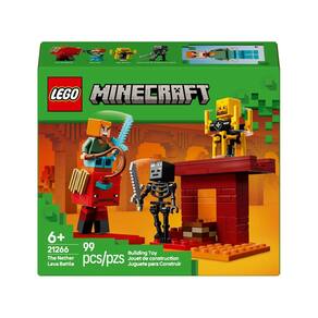 LEGO A Batalha de Lava no Nether 21266 A Batalha de Lava no Nether (21266) com 99 peças, é um pequeno conjunto LEGO Minecraft que fornece uma versão para construir e brincar do famoso videogame Este conjunto de atividade de Minecraft versátil contém figuras conhecidas do jogo, recursos divertidos e ação sem fim, tornando-o um agrado perfeito para crianças maiores de 6 anos As crianças juntam-se à Alex do Minecraft em uma missão para remover detritos ancestrais de uma seção da ponte da fortaleza do Nether na floresta carmesim Quando o detrito é removido e elementos de lava automaticamente caem em cascata, as figuras Minecraft de um esqueleto wither com uma espada de pedra e uma chama que gira varas ficam no caminho da fuga da Alex As crianças usam a icônica espada de diamante para batalhar contra as criaturas antes de escapar em um andarilho, outra figura do Minecraft com pernas articuláveis e uma sela Jogadores de Minecraft sabem que precisam pegar fungo distorcido para guiar o andarilho