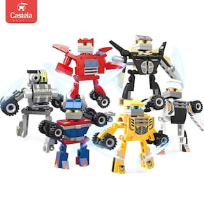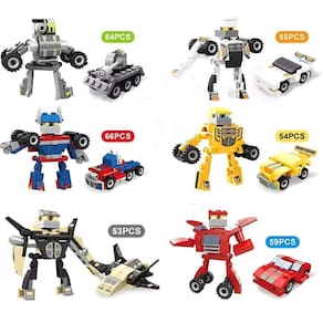 Com o kit Blocos de Montar Cápsula Série Robôs, a diversão e a imaginação andam juntas São 342 peças para criar 6 modelos diferentes de robôs, que também podem ser transformados em 6 modelos de carros. As crianças podem montar 6 guerreiros mecânicos únicos ou 6 veículos estilosos, estimulando a criatividade, o raciocínio lógico e a coordenação motora.