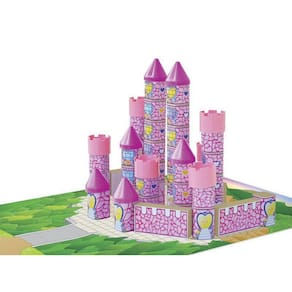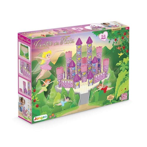 Castelo das Fadas é um brinquedo para soltar a imaginação e montar um mundo encantado Elaborado a partir de bloquinhos em madeira de MDF com peças de plástico para as torres e telhados, é composto por cartela/base decorada 29x41cm em papel cartonado e cartela de adesivos para decoração dos bloquinhos. Além de ser uma alternativa ecológica, é um brinquedo excelente para a criança ampliar os horizontes da imaginação, desenvolver habilidades e a capacidade motora fina. Com as peças podem-se montar diversas configurações de cenário, dando à criança maior liberdade para se divertir, criar e brincar.