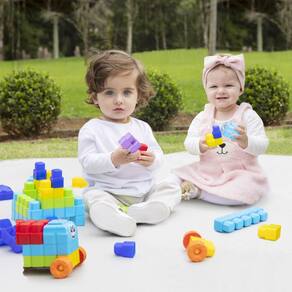 Com peças de encaixe em diversas formas, tamanhos e cores vibrantes, ele convida as crianças a soltar a imaginação, explorando possibilidades infinitas de construção.