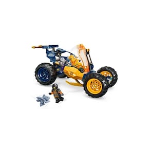 Meninos com mais de 7 anos podem recriar batalhas emocionantes da 2 temporada do programa de TV NINJAGO Dragons Rising com o LEGO NINJAGO Arins Ninja Off-Road Buggy Car (71811) Este conjunto de aventura para crianças inclui um veículo de brinquedo na cor amarela de Arin com rodas móveis, suspensão, cabine que abre com espaço para 2 minifiguras, 2 disparadores de espigas com 6 espigas para disparar e um grande gancho nas costas para ajudar a capturar vilões