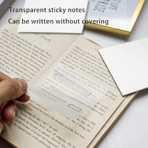 ?Adesivo removível?é fácil de colar ou remover e não deixa resíduos na página. Você pode usar uma caneta esferográfica para escrever texto em notas adesivas transparentes sem danificar o livro