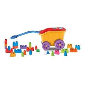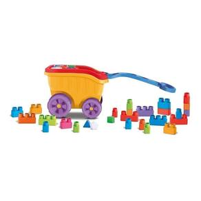 Uma linda carriola que vem com alcinha para o bebê puxar e levar para onde quiser. Vem com 24 peças de blocos macios para o bebê brincar, se divertir e não se machcuar. Blocos fofinhos Além disso também tem 10 formas geométricas que se encaixam nas molduras da tampa da carriola.