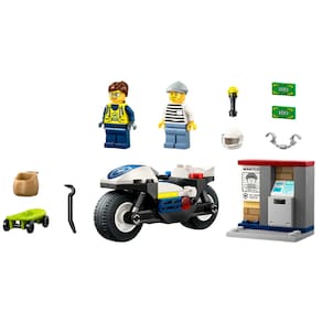 Descrição do produto : " Surpreenda seu jovem herói de ação com este emocionante conjunto LEGO® City Perseguição Policial de Motocicleta (60455). Perfeito para pequenos construtores a partir de 4 anos, ele inclui uma motocicleta policial incrível com pneus largos, um skate de fuga para bandidos e um mini-caixa eletrônico que abre com uma nota de brinquedo. Basta adicionar as minifiguras do policial e do bandido para horas de brincadeira imaginativa e histórias. Este conjunto de veículo policial de fácil construção inclui um elemento LEGO Starter Brick e um guia ilustrado. Ou você pode levar seu herói do dia a dia em uma emocionante jornada de criatividade usando as instruções digitais do aplicativo LEGO Builder. Aqui, as crianças podem ampliar e girar modelos em 3D, acompanhar seu progresso enquanto constroem e explorar e salvar outros conjuntos. : "