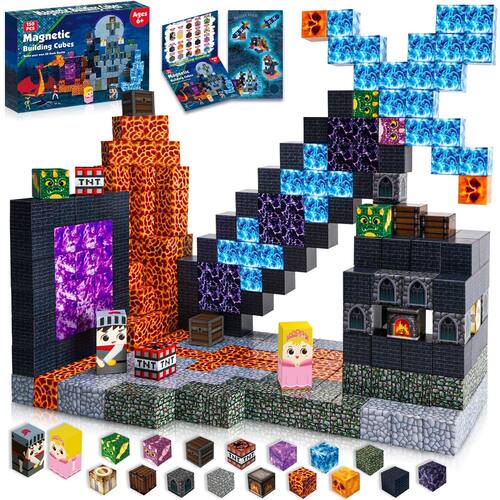 Blocos magnéticos – 150 peças de ímã construído, castelo escuro, espada, domínio, mundo, brinquedos magnéticos para crianças Montessori, presentes de Natal, aniversário, brinquedos sensoriais STEM para meninos e meninas de 10 anos - ?Construa seu próprio mundo de domínio da espada do castelo escuro?Prepare-se para construir um castelo com esta nova simulação de cubo magnético "Dark Castle Sword Domain World" Imagine as histórias incríveis que podem acontecer no Dark Castle Sword Domain World e comece sua aventura no mundo do castelo! Os blocos magnéticos permitem que seu filho viaje para um mundo de castelos maravilhosos ou um mundo de fantasia de possibilidades! De construções simples a desafiadoras, experimente a diversão de encenar e brincar de fantasia! Deixe a imaginação das crianças correr solta com nosso conjunto magnético aberto! - ?Kit de cubo magnético Dark Castle Sword Domain? Inclui 150 cubos magnéticos em 18 cores. Livreto de ideias com o enredo e belos padrões, mantenha-os ocupados de maneiras inteligentes. Os cubos de atividade magnética GraceDuck são feitos de material ABS de alta qualidade e trabalhados com as bordas redondas e o tamanho certo. Ao contrário de outros brinquedos magnéticos no mercado, nosso kit de cubos magnéticos com ímãs internos super fortes, é mais fácil para crianças a partir de 3 anos colarem os cubos juntos e tornarem as estruturas resistentes. Os brinquedos STEM perfeitos ajudam as crianças a obter uma compreensão mais profunda do mundo da estrutura e aprender sobre as propriedades magnéticas! - ?Brinquedos educativos sensoriais para crianças?Os blocos de construção magnéticos oferecem uma excelente maneira para as crianças aprenderem, brincarem e expandirem sua autoconfiança enquanto entendem melhor o mundo da construção. Os blocos também farfalham como pequenos sinos enquanto brincam com eles, o que atrairá a atenção das crianças e as encantará. Os brinquedos de construção e blocos de construção desbloqueiam muitas habilidades para as crianças. Com estes azulejos magnéticos para construir, girar, destruir e reconstruir, ajuda a promover o pensamento criativo, concentração e paciência das crianças, coordenação motora motora, habilidades cooperativas, habilidades espaciais e motoras! - ?Blocos de aprendizagem STEM?O conjunto de blocos de construção magnéticos atraentes é projetado como brinquedos pré-escolares para orientar a compreensão mais profunda da criança sobre o mundo da estrutura, mantendo-as focadas no jogo de quebra-cabeça magnético e confiança em suas próprias ideias e imaginação. Os blocos de construção são divertidos e envolventes, as cores brilhantes atrairão a atenção das crianças e farão as crianças ansiarem pelo tempo longe das telas. Assim, até mesmo crianças pequenas podem imaginar e criar os edifícios dos seus sonhos. Brinquedos de presentes recomendados para crianças de 4 a 8 anos! - ?Melhor presente para crianças?É um ótimo brinquedo fidget infantil para sala de aula, crianças, pré-escolares, adolescentes, que são populares entre meninos e meninas de 3 anos ou mais. Assim, até mesmo crianças pequenas podem imaginar e criar os edifícios dos seus sonhos. As crianças vão se divertir com estas peças magnéticas e aprender brincando. Presentes educativos perfeitos para aniversários, Natal, dia das crianças, STEM e atividades escolares. Torne-o a melhor opção para brincadeiras de união entre pais e filhos nos fins de semana!