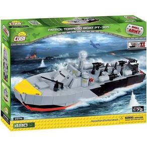 Blocos para montar Cobi - Barco Patrol Torpedo Boat PT-305 480 Peças Venha se divertir montando este barco torpedeiro, com partes móveis, canhões e hélices que giram, excelente acabamento final. Compatível com outras marcas. Ótima diversão para toda a família. Melhor custo benefício do mercado custo por bloquinho e melhor acabamento final. Possui manual de instruções detalhado e adesivos para personalização. Certificado INMETRO: CE-BRI/BRICS 00167-15