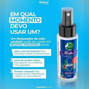 Contém: 01 - Bloqueador de Odor Sanitário, Aroma de Algas Marinhas, 60ml, Linha Relax Pantanal Aromas