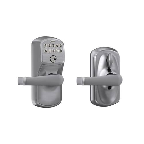SCHLAGE Fechadura de teclado eletrônico comercial com alavanca Elan cromado escovado FE595CS V PLY 626 ELA Plymouth Light (cromado acetinado)