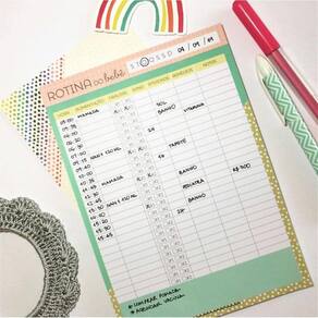 • Mais informações: - Impressão em papel offset 75g; - Tamanho A5; - Cor de fundo: branco; - 50 páginas destacáveis; - Organize toda a rotina das crianças de um jeito divertido; - Estampas coloridas e super fofas; - Para colocar na geladeira com ímã ou em um mural; - Incentiva a organização da rotina em família.