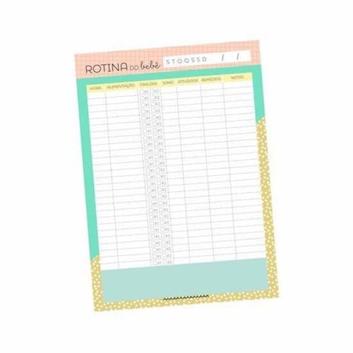 Bloquinho Rotina Do Bebê Coloré Retrato Bloquinho com 50 folhas destacáveis para preencher com informações importantes da rotina do bebê, usar para lembrar dos remédios e de itens para comprar, horários de sonecas, dormidas, trocas de fraldas e alimentação. Para usar na escrivaninha ou colar na parede ou mural.