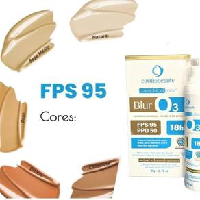 Blur O3 Ozônio Cosmoblock FPS 95 Cosmobeaty. Proteção térmica, UVA, UVB, FPS 95 e PPD 50. Com proteção solar para todos os tipos de pele. Disfarce instantâneo de rugas, linhas, poros dilatados, acne e desordem pigmentar, protege e maquia a pele com alta fixação. Colágeno com ação antienvelhecimento e aumento da vitalidade celular. Um protetor solar com cor que protege, alta resistência à água e ao suor: perfeito para prática de atividades físicas.