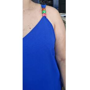 Blusa Alcinha Azul Lu Ripper Bolinhas Coloridas Acrílico.