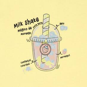 Toda estilosinha e pronta para ir tomar um milk shake com a mamãe! Confeccionada em tecido meia malha na cor amarela, a blusinha possuí estampa de milk shake com escrita "Milk shake mágico de morango". A peça conta com gola mais arredondada e manguinhas curtas, tudo para sua pequena sentir-se confortável nos dias de calor.