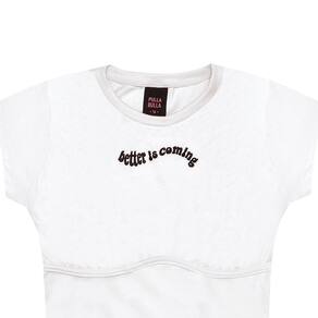 Para esse Verão a Pulla Bulla veio preparada trazendo conforto, charme e estilo tudo em uma linda Blusinha com estampa bordada, confeccionada em Meia malha e Ribana 2x1 leve na cor Branca. Tudo para a sua garotinha aproveitar os dias de Verão com looks maravilhosos.