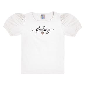 Lindos looks com apenas uma peça! Esta blusa é confeccionada em cotton leve na cor branca, possuí estampa bordada em paetê com escrita “feeling” (sentimento). Sua pequena fashionista vai arrasar no passeio e no look, a diversão vai ser garantida durante o passeio.