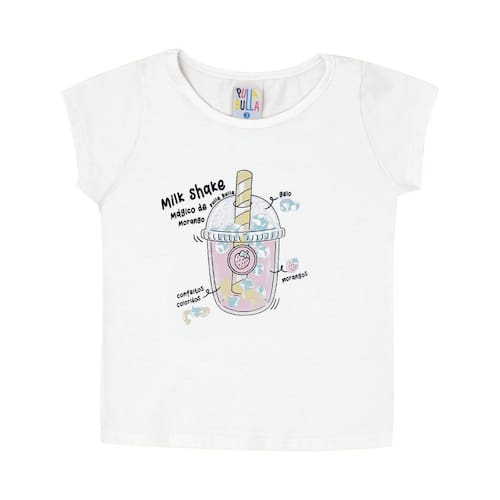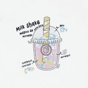 Toda estilosinha e pronta para ir tomar um milk shake com a mamãe! Confeccionada em tecido meia malha na cor branca, a blusinha possuí estampa de milk shake com escrita "Milk shake mágico de morango". A peça conta com gola mais arredondada e manguinhas curtas, tudo para sua pequena sentir-se confortável nos dias de calor.