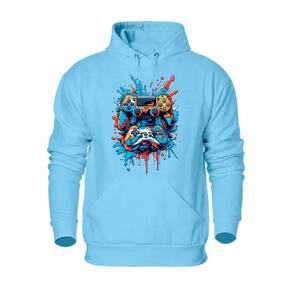 Blusa Canguru Plus Size Moletom Estampada Masculina Com Calça Jogger Lisa Alta Qualidade Quentinho - Azul Claro - G2