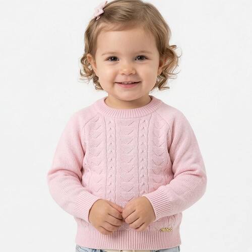 BLUSA CORAÇÕES E TRANÇAS TRICÔ KIDS