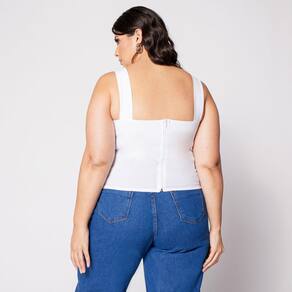 Blusa Cropped de Alça Plus com Aro em V Branco