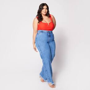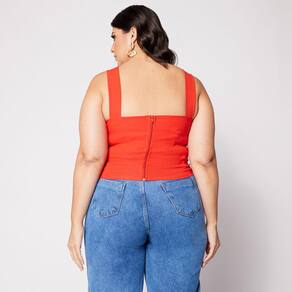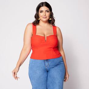 Blusa Cropped de Alça Plus com Aro em V e Bojo Laranja