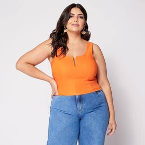 Blusa Cropped de Alça Plus com Aro em V e Bojo