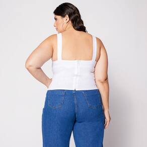 Blusa Cropped de Alça Plus com Nó e Bojo Branco